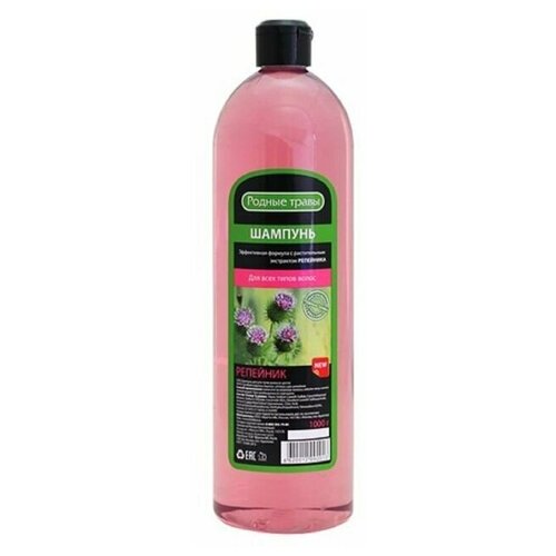 Родные травы Шампунь "Родные травы", для всех типов волос, с репейником, 1000 мл