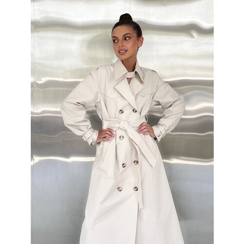 Тренч TITO TEPLO хлопковый с коричневой фурнитурой в жемчужном цвете