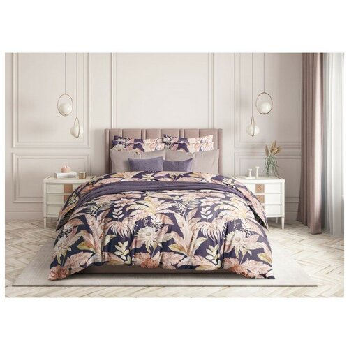 Сатин ЗефирТекс Постельное белье Tropicana, сатин, цветы, фиолетовый (2 спальный Макси с нав. 50х70 см,)