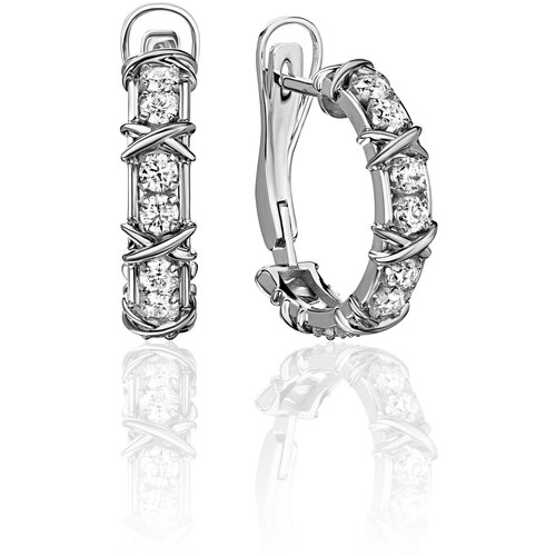 Серьги конго Tsar, белое золото, 585 проба, родирование, белый