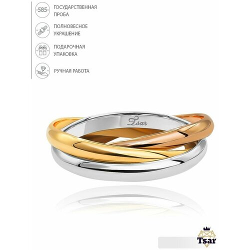 Кольцо обручальное Tsar комбинированное, желтое, белое, красное золото, 585 проба, размер 18