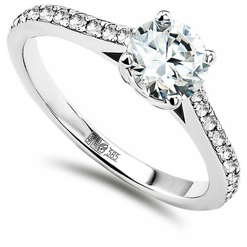 Кольцо помолвочное Tsar белое золото, 585 проба, родирование, муассанит, размер 19