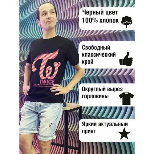 Футболка мужская черная из хлопка с DTF рисунком TWICE - 3831