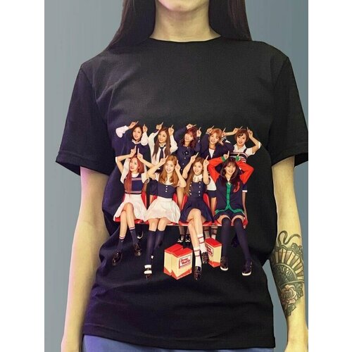 Футболка женская черная из хлопка с DTF рисунком TWICE - 3831