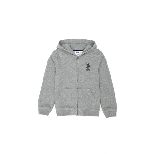 Толстовка U.S. POLO ASSN., средней длины, капюшон, карманы, манжеты, размер 13_14, серый
