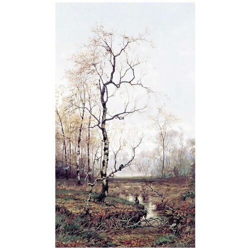 Репродукция на холсте Ручей в берёзовом лесу (Stream in the birch forest) Шишкин Иван 44см. x 30см.