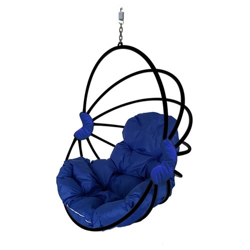 Подвесное кресло m-group овал ротанг чёрное, голубая подушка