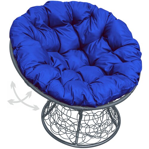 Кресло M-Group папасан пружинка ротанг серое, синяя подушка