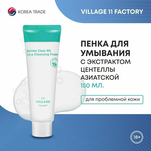 Очищающая пенка для умывания лица с экстрактом центеллы азиатской VILLAGE 11 FACTORY DERMA CLEAR B5 CICA CLEANSING FOAM 150 мл