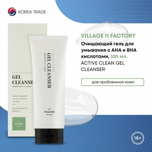 Очищающий гель для умывания с AHA и BHA кислотами для жирной и проблемной кожи лица VILLAGE 11 FACTORY ACTIVE CLEAN GEL CLEANSER 100 мл