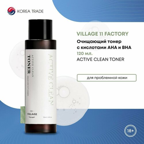 Очищающий тонер для жирной и проблемной кожи лица с AHA и BHA кислотами VILLAGE 11 FACTORY ACTIVE CLEAN TONER 120 мл