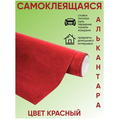 Алькантара самоклеящаяся декоративная ткань, Искусственная замша, Красная 1.5 м х 0,3 м