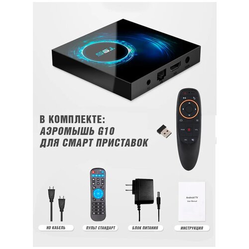 Смарт ТВ приставка T95, 4/32ГБ, Андроид приставка с google play, Андроид 10 c поддержкой bluetooth, Пульт c голосовым управлением G10 Air Mouse