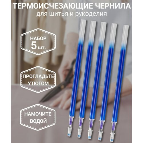 Стержни маркеры для ткани смывающиеся , исчезающие Синие 5 штук