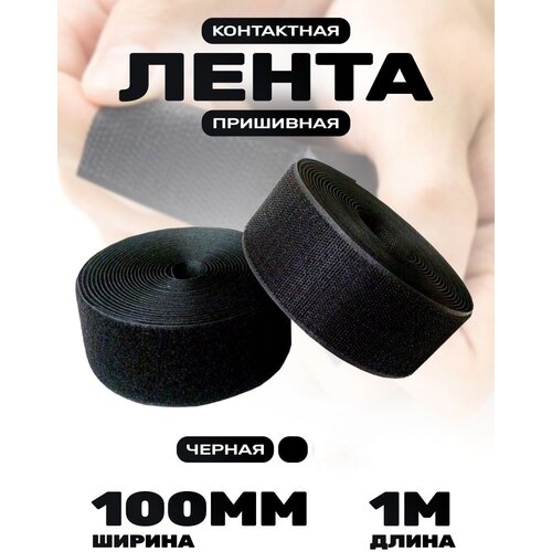 Лента контактная липучка пришивная текстильная петля крючок ширина 10 см длина 1м черный