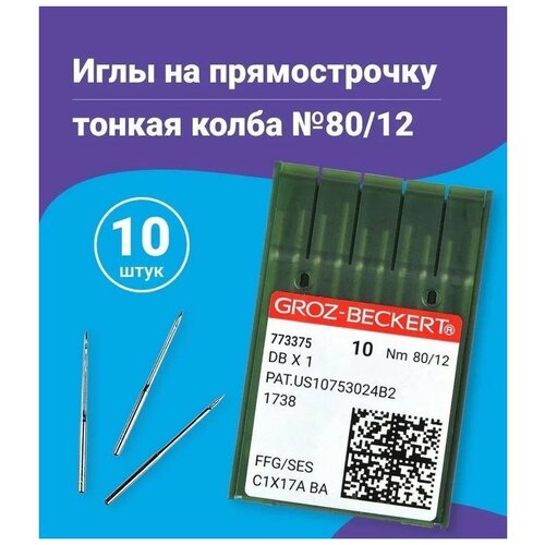 Иглы для прямострочных швейных машин тонкая колба №80/12 иглы на прямострочку