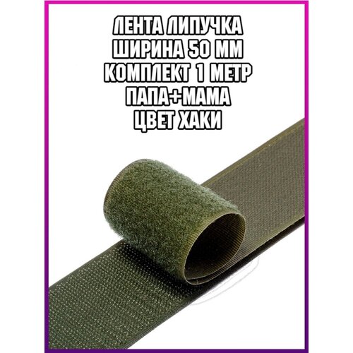 Лента контактная липучка пришивная текстильная петля крючок 1 метр . Хаки