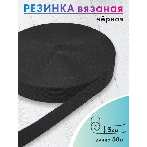 Эластичная широкая резинка Чёрная ширина 3 см. для одежды, шитья, рукоделия, эластичная лента тесьма 50 метров