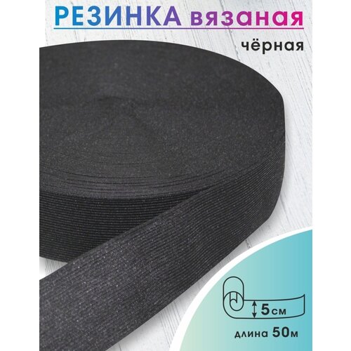 Эластичная широкая резинка Чёрная ширина 5 см. для одежды, шитья, рукоделия, эластичная лента тесьма 50 метров