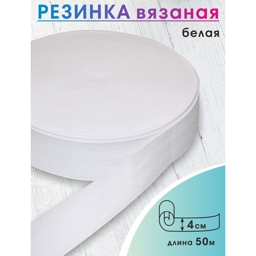 Эластичная широкая резинка белая ширина 4 см. для одежды, шитья, рукоделия, эластичная лента тесьма 50 метров