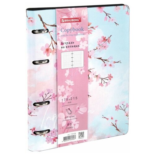 Тетрадь на кольцах А5 (180х220 мм), 80 листов, под кожу, клетка, тиснение фольгой, BRAUBERG VISTA, Rose, 112125