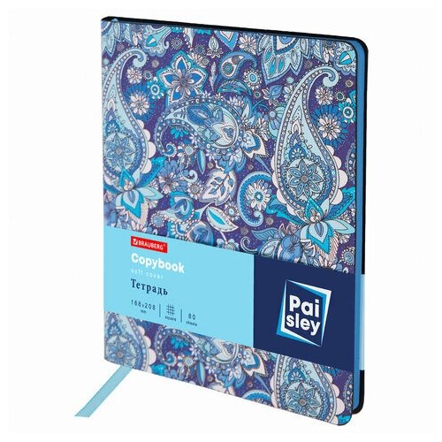Тетрадь А5 (168х208 мм), 80 л., сшивка, клетка, под кожу, BRAUBERG VISTA, "Paisley", 403925