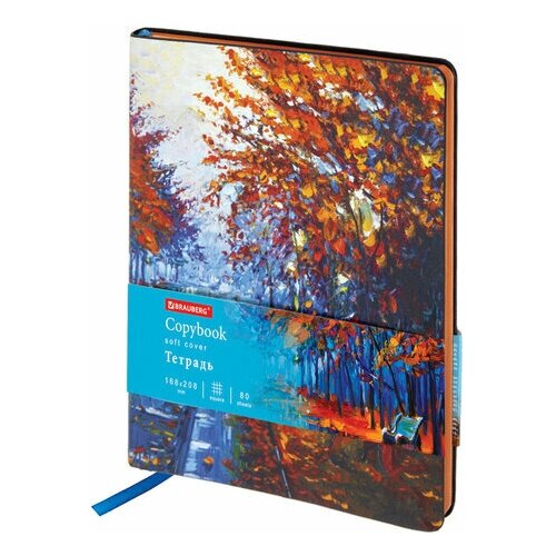 Тетрадь А5 (168х208 мм), 80 л., сшивка, клетка, под кожу, BRAUBERG VISTA, "Autumn", 403927