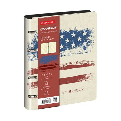 Тетрадь на кольцах А5 (180х220 мм), 80 л под кожу, BRAUBERG VISTA, USA, 112122