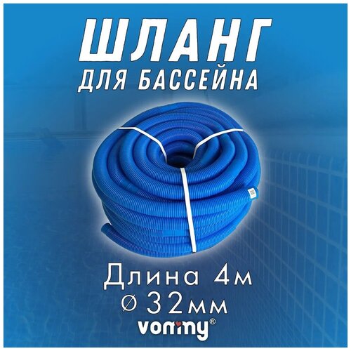 Шланг для бассейна D 32 мм, длина 4 м. Отрезной, гофрированный патрубок для подсоединения донного пылесоса, фильтра, нагревателя Vommy