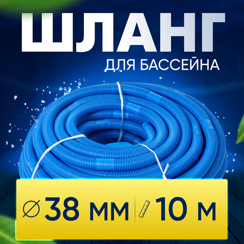 Шланг для бассейна D 38 мм, длина 10 м. Отрезной, гофрированный патрубок для подсоединения донного пылесоса, фильтра, нагревателя Vommy