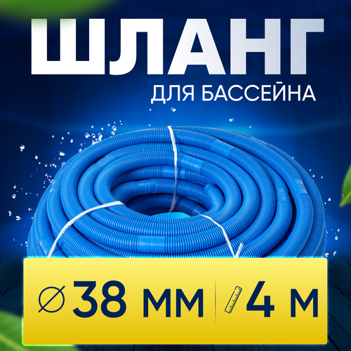 Шланг для бассейна D 38 мм, длина 4 м. Отрезной, гофрированный патрубок для подсоединения донного пылесоса, фильтра, нагревателя Vommy