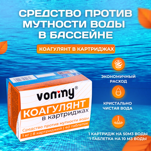 Средство против мутности и взвеси в бассейне Коагулянт в картриджах, химия для бассейнов делает воду кристально чистой
