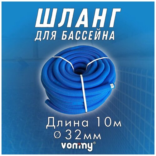 Шланг для бассейна D 32 мм, длина 10 м. Отрезной, гофрированный патрубок для подсоединения донного пылесоса, фильтра, нагревателя Vommy