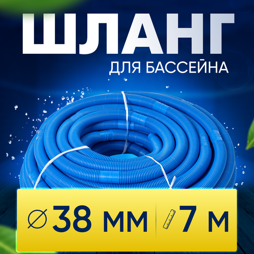 Шланг для бассейна D 38 мм, длина 7 м. Отрезной, гофрированный патрубок для подсоединения донного пылесоса, фильтра, нагревателя Vommy