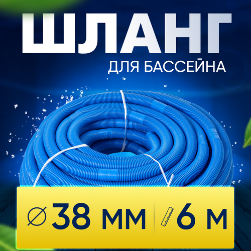 Шланг для бассейна D 38 мм, длина 6 м. Отрезной, гофрированный патрубок для подсоединения донного пылесоса, фильтра, нагревателя Vommy
