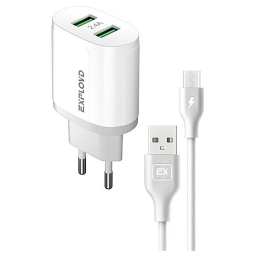 Зарядное устройство Exployd Easy 2хUSB - MicroUSB 2.4A White EX-Z-1433