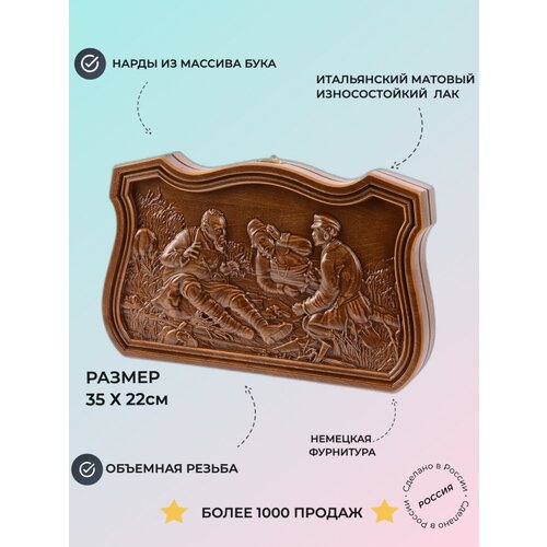 Нарды деревянные резные Охотники на привале / из массива бука / 35 x 44 см