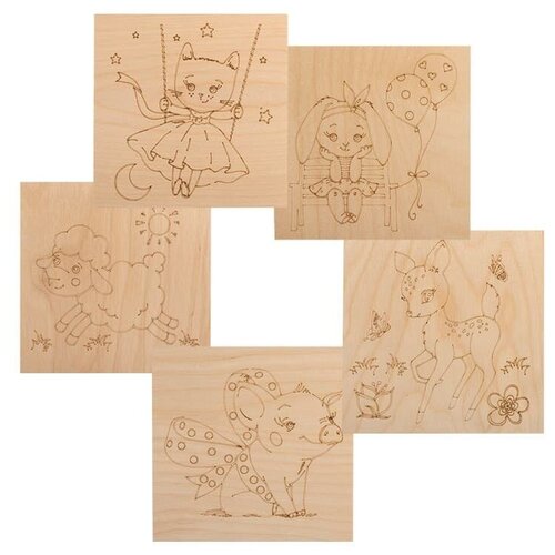Набор 5 досок для выжигания с рисунком "Зверушки", 15х21 см Woody Puzzles 9520924 .