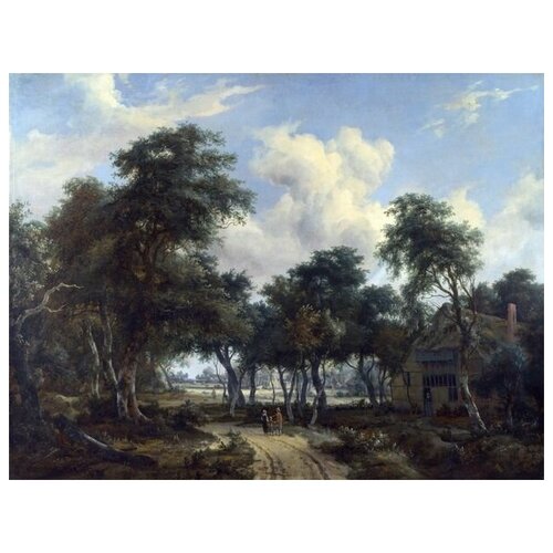 Репродукция на холсте Деревенский пейзаж с домом ( A Woody Landscape with a Cottage) Хоббема Майндерт 53см. x 40см.