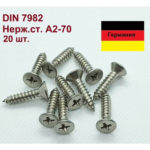 Саморез 4,8х22 DIN 7982, нерж. ст. А2-70, потай. гол, крест. 20 шт.