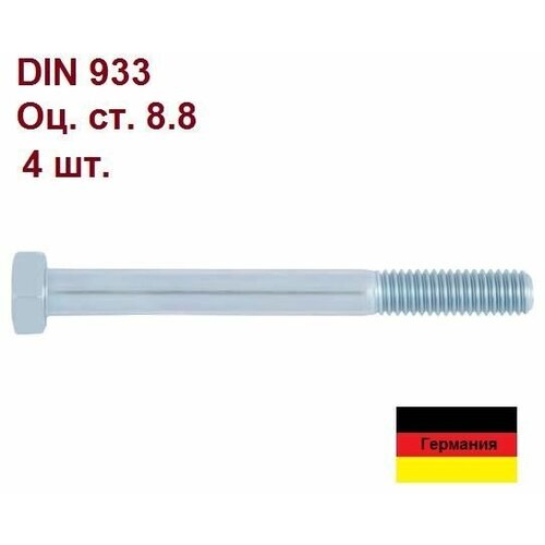 Болт DIN 933 М16х90, оц. сталь без покр. Wurth Германия. 4 шт.