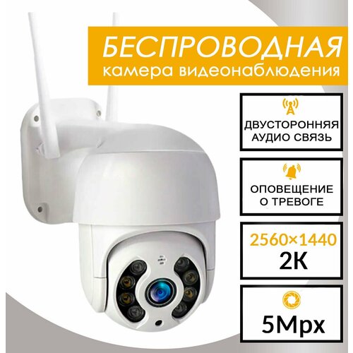 Уличная IP камера видеонаблюдения/беспроводная Wi-Fi поворотная 5 Mpix 2K разрешение с микрофоном и динамиком