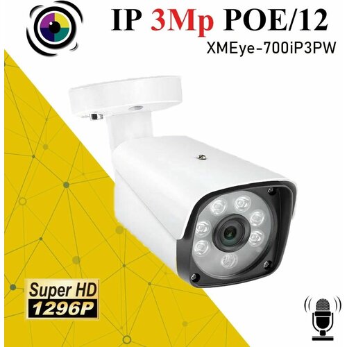 Уличная IP камера видеонаблюдения с микрофоном 3MP, XMeye-700IP3PW / Цифровая камера со встроенным микрофоном 1296P