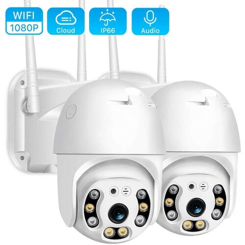 Комплект на 2 уличные поворотные камеры для дома/дачи с микрофоном и динамиком FULL HD/Комплект Миниатюрных уличных камер(С блоками питания)