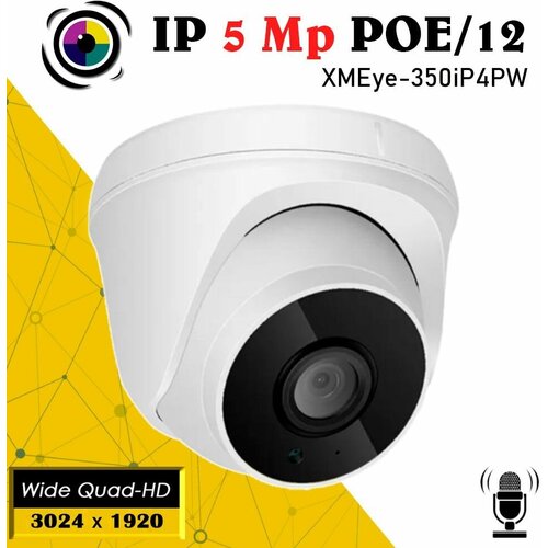 IP камера купольная видеонаблюдения с микрофоном 5MP, XMEye-350iP4PW-2.8 POE/12 / Цифровая камера со встроенным микрофоном 1920P