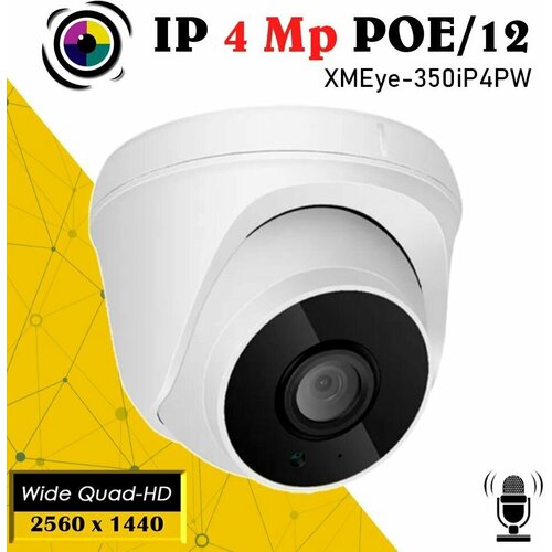 IP камера купольная видеонаблюдения с микрофоном 4MP, XMEye-350iP4PW-2.8 POE/12 / Цифровая камера со встроенным микрофоном 1296P