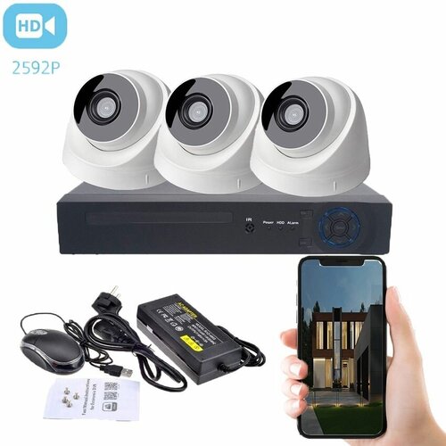 Готовый цифровой IP/POE комплект видеонаблюдения на 3 внутренние камеры с микрофоном