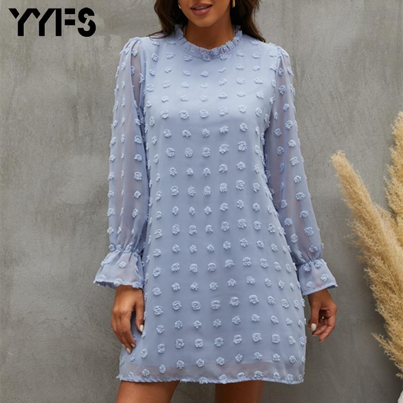 2022 Весна и лето Новый пузырь с длинными рукавами Шифон Жаккардовое платье снизу