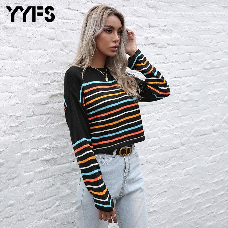 Женская осень 2021 в Европе и Америке с трикотажным пуловером полосатый с длинными рукавами с круглым вырезом свитер женщины