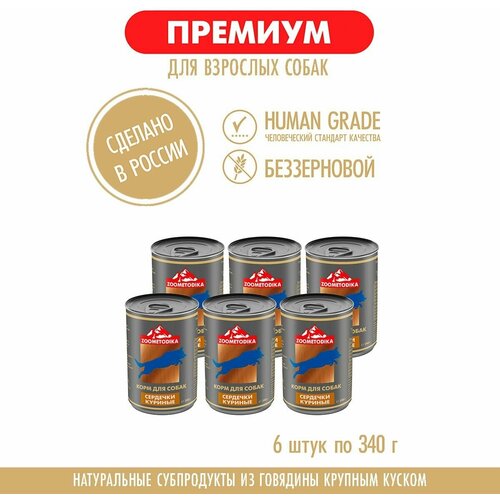 Полноценный консервированный корм для собак ZOOMETODIKA премиум сердечки куриные 6 банок по 340 граммов